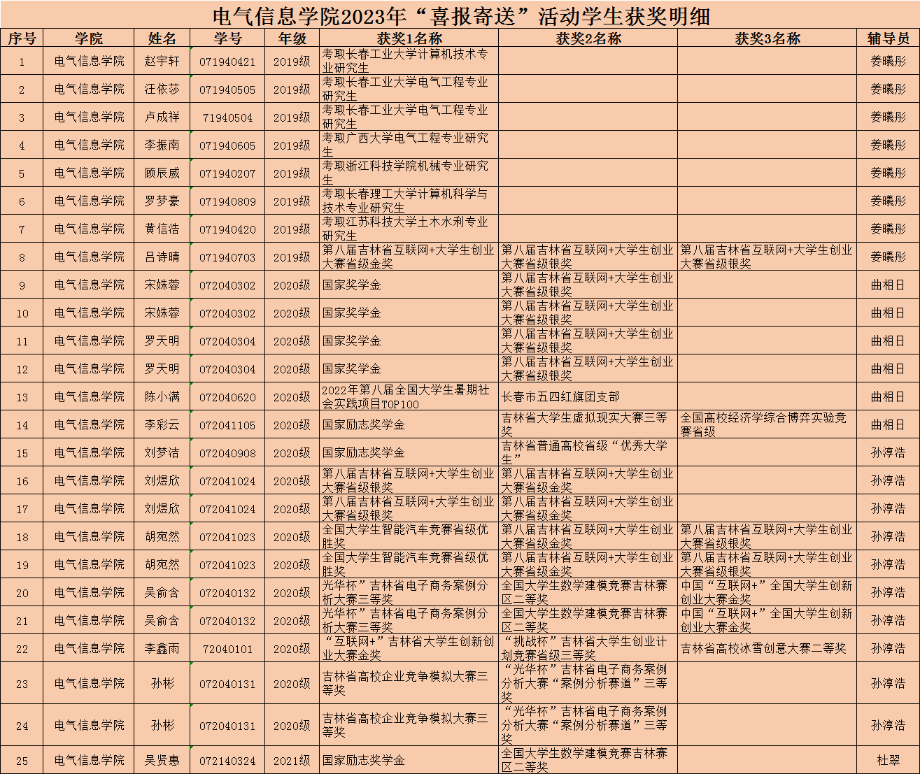 此次寄送喜报主题活动,学校向学生家长、所在生源中学老师分享了学生成长和进步的喜悦,增进了学生家长、所在生源中学老师与学校的有效联动,将学校育人成果转化为了育人育才的强大动力。今后,电气学子定将积极进取、诚信感恩、奋发有为,争取取得更大的成绩与进步。