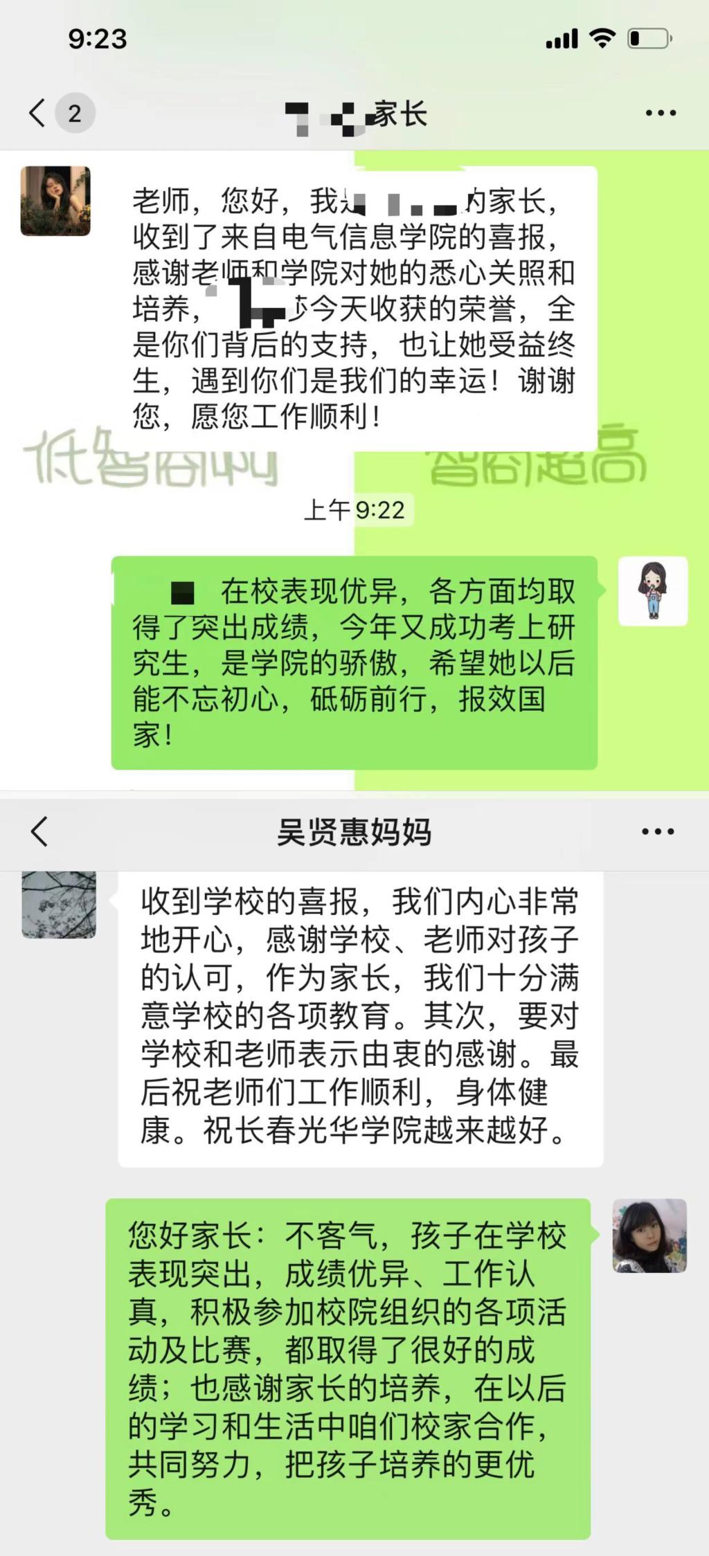 本次喜报寄送的范围为在校期间荣获多个奖项及2019级成功考取研究生的25名开云kaiyun官方网站优秀学子,寄发至浙江、山东、江苏等省份的学生家长和所在生源中学。收到喜报后,学生家长和所在高中老师分外惊喜和自豪,纷纷表达了喜悦及感谢之情。他们表示,感谢学校对孩子四年来的培养与关爱,孩子的成长和进步离不开长春光华学院老师们的关怀与教导,感谢学校、感谢老师!祝长春光华学院桃李芬芳,蒸蒸日上!