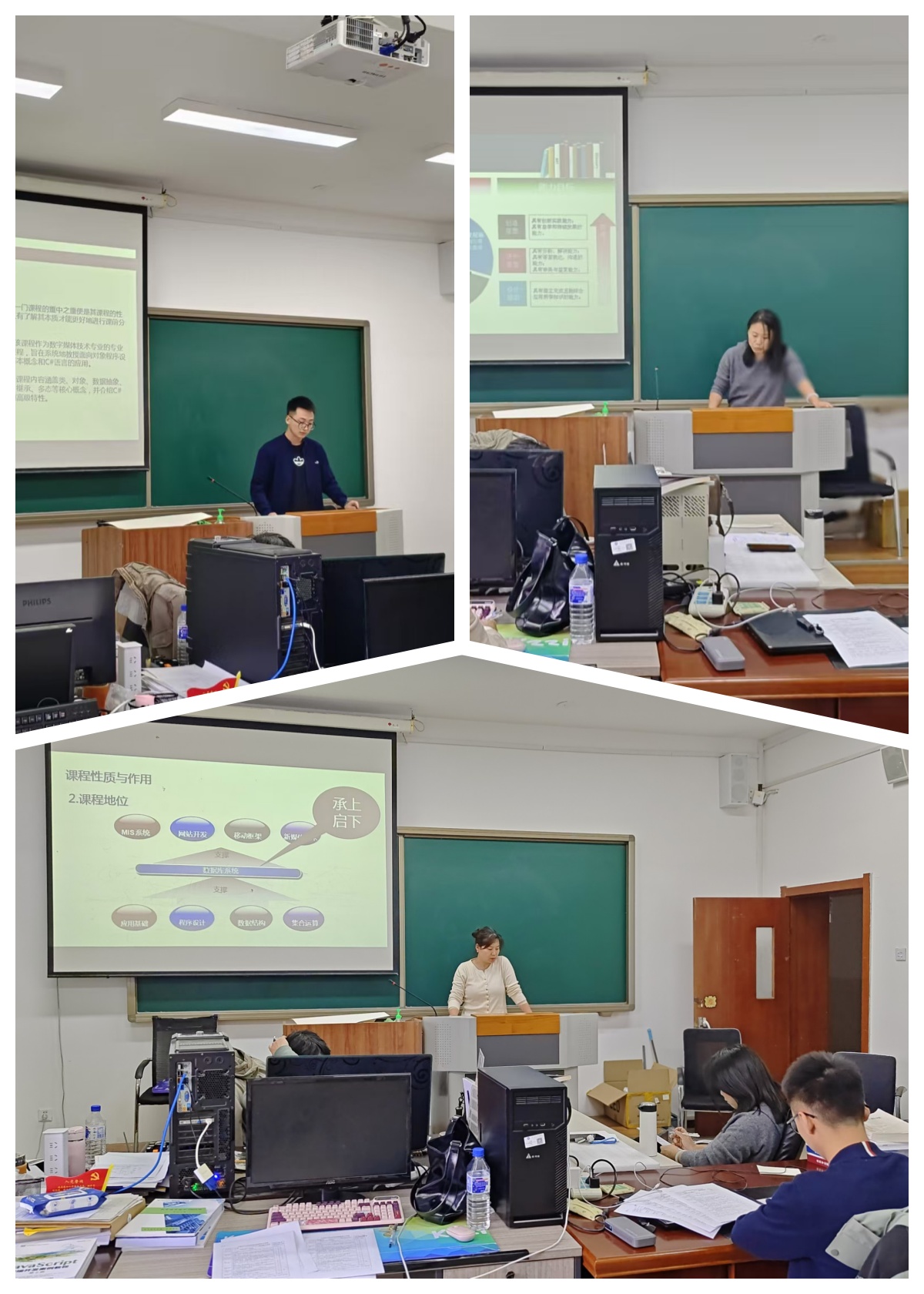 通过本次说课,各专业教师加深了对专业课程的了解,互相学习了教学内容设计、教学方式方法手段使用、考核方式改革、教学资源建设等内容,尤其年轻教师加深了对不同课程的理解,加强了对课堂教学环节的把控,对提高教育教学质量起到了很好的促进作用。