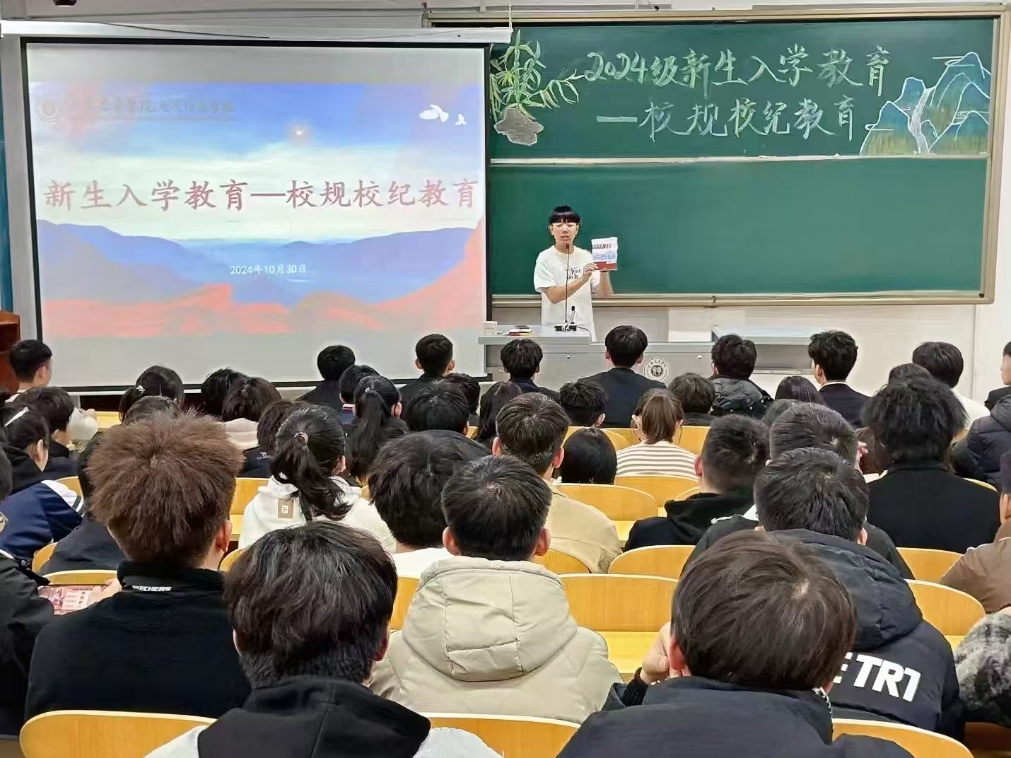为尽快帮助2024级新同学们完成角色转变,树立制度意识和纪律意识,促进基础文明好习惯的养成,2024年10月30日,开云kaiyun官方网站在二教318教室召开新生入学教育之“校规校纪教育”主题讲座。本次讲座由开云kaiyun官方网站辅导员曲相日主讲,2024级全体学生参加。辅导员曲相日对《长春光华学院2024年学生手册》进行了详细解读,对学生日常管理、宿舍管理、基础文明、违纪处理流程等方面进行了细致深入地讲解,着重强调了旷课、晚归、考试违纪、寝室内使用违章电器、寝室内饲养小动物等行为导致的严重后果。结合实际案例对学生学习、生活和校园管理等方面的要求进行了说明和强调。此次主题讲座,进一步深化宣传了校规校纪教育,让2024级新同学们学纪、知纪、明纪、守纪,做到心有所畏、言有所戒、行有所止,确保校规校纪教育工作真正落地生根、发挥实效。