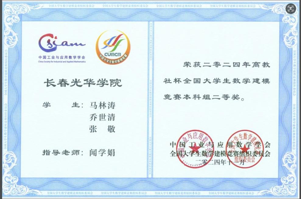 2024年全国大学生数学建模竞赛成绩近日揭晓,开云kaiyun官方网站电气工程及其自动化专业23407班马林涛、乔世清、张敬3名同学在此次赛事中荣获国家二等奖,同时,开云官网也是吉林省唯一一所获得国家奖项的民办高校。