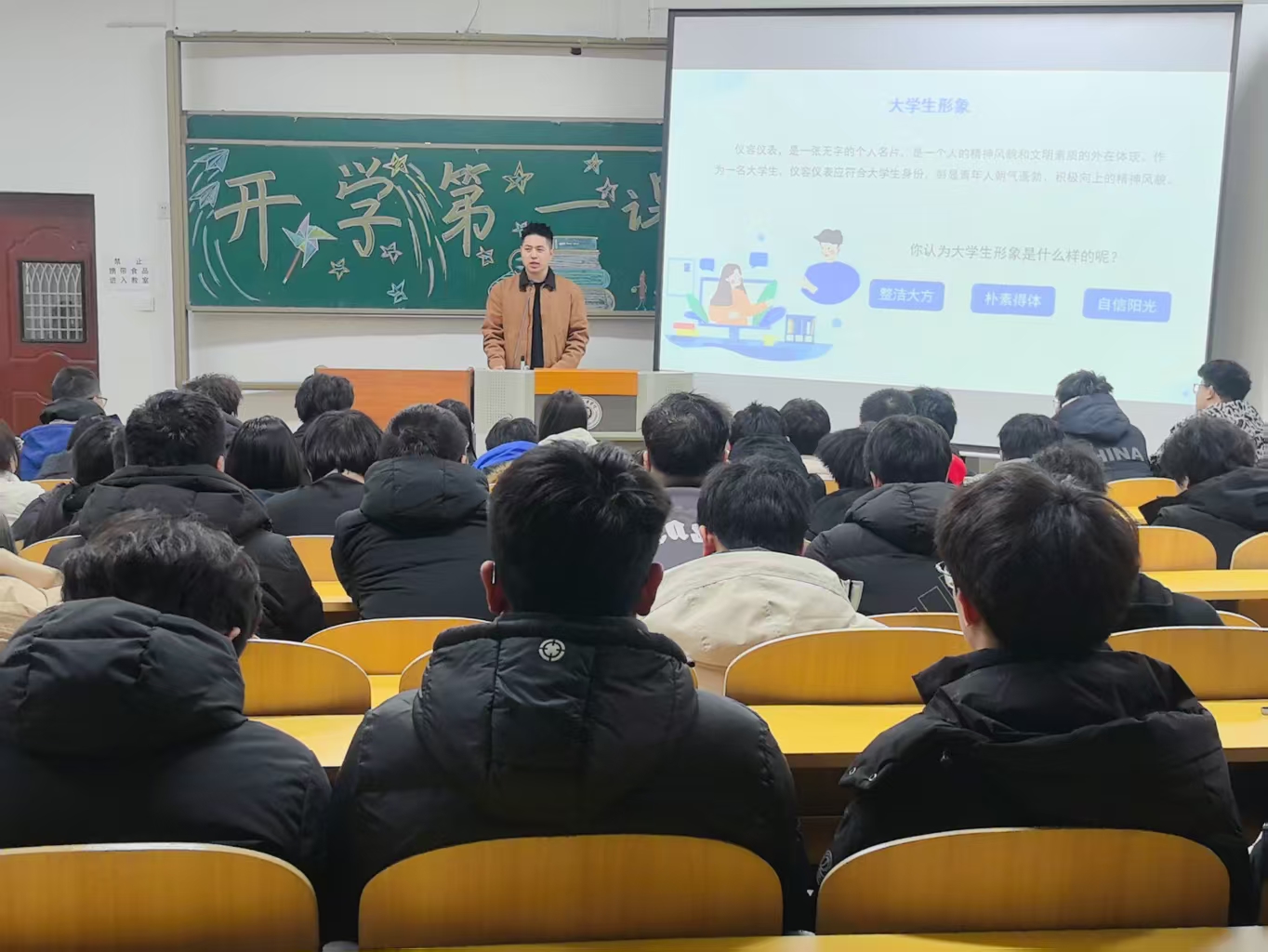 会上,全体辅导员首先教育引导同学们要尽快适应新学期,合理规划未来发展方向,掌握扎实的专业技能和科学的时间管理能力,以昂扬的姿态迎接新学期。同时,鼓励同学们要主动投身社会实践和公益服务,通过实际行动践行社会责任,提升实践能力,努力成为有担当、有作为的新时代青年。