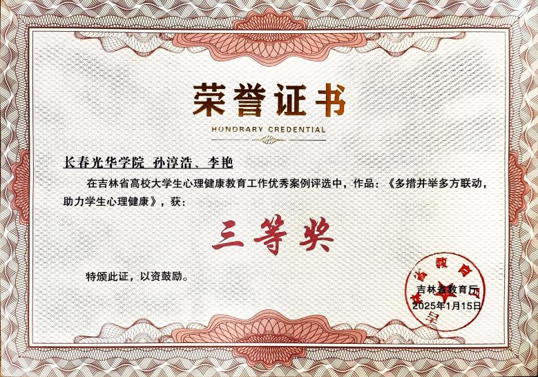 近日,吉林省高校心理健康教育系列评选与竞赛结果揭晓。在吉林省高校大学生心理健康教育工作优秀案例评选中,开云kaiyun官方网站孙淳浩、李艳的案例《多措并举多方联动,助力学生心理健康》荣获三等奖。