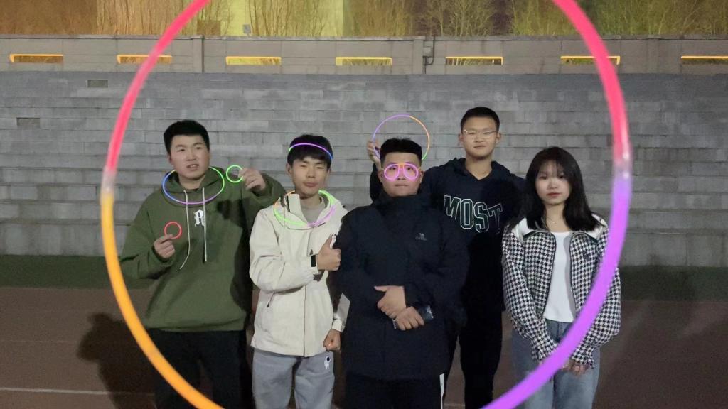 活动中,养成教育体育锻炼小组负责人为每一位参与夜跑的同学发放了荧光手环、荧光眼镜等物品,五彩缤纷的荧光棒随着摆动的手臂在田径场上挥舞闪耀,同学们在荧光中欢乐奔跑,为光华园注入了青春的活力,充分展现了当代大学生的青春风貌。