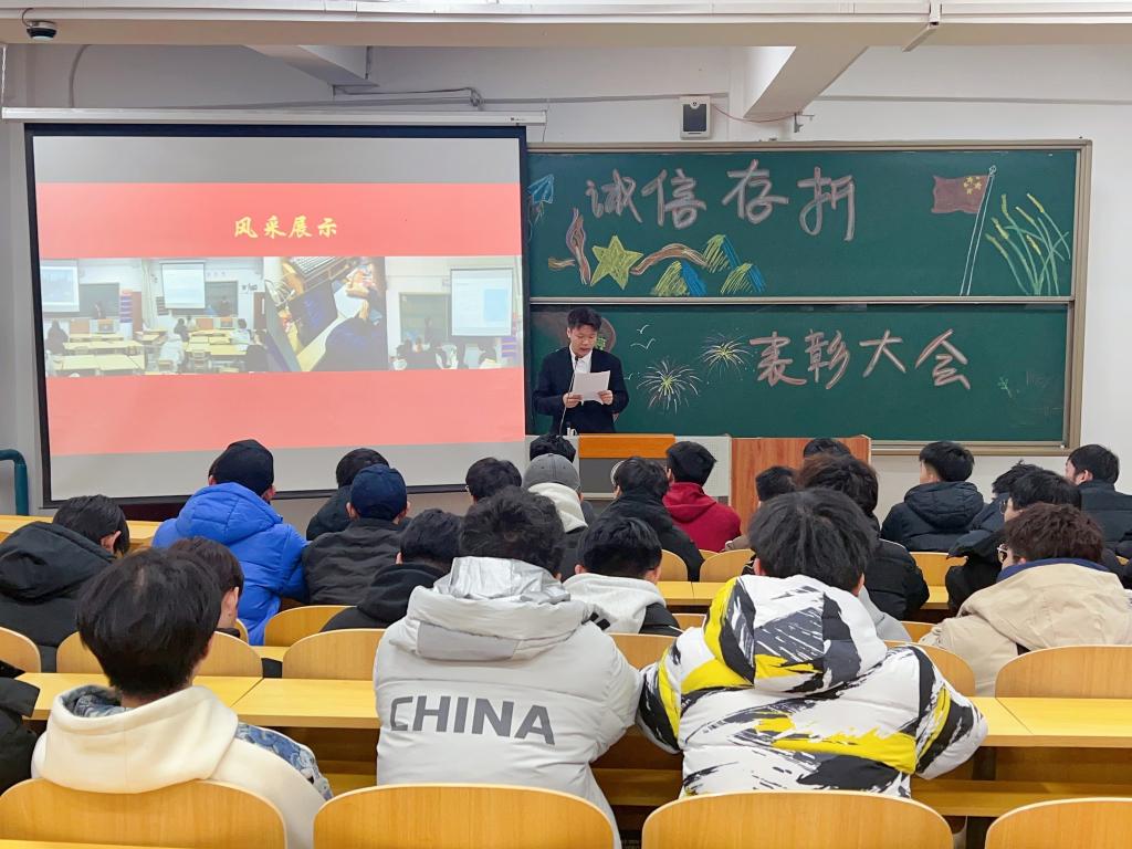 为进一步促进同学们养成良好的行为习惯,增强同学们的诚信意识,发挥典型引领和榜样示范作用,2024年12月19日,开云kaiyun官方网站于二教318召开2024年度“诚信存折”活动表彰大会。开云kaiyun官方网站团总支书记曲相日出席本次大会,获奖代表和部分学生参加。